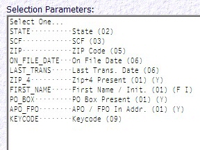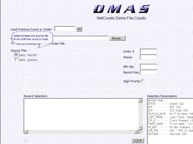parameters for it are kept on file so they can be retrieved and modified or re-run later. For running a new selection,