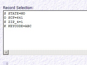 The text area under the Record Selection heading is where your selection criteria will go. To help you enter