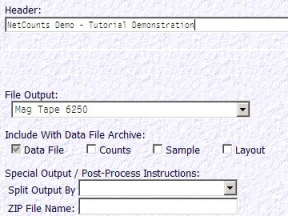 For counts, the Header box is used to specify some details about this count that will get passed through to the
