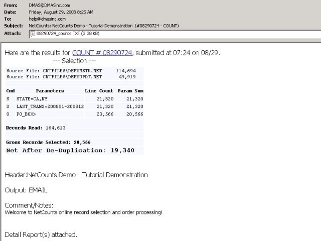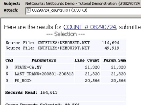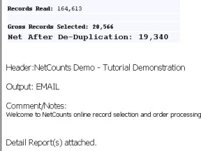 Regardless of the specifics of your NetCounts Selection, the Results message will generally look the same.
