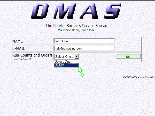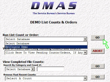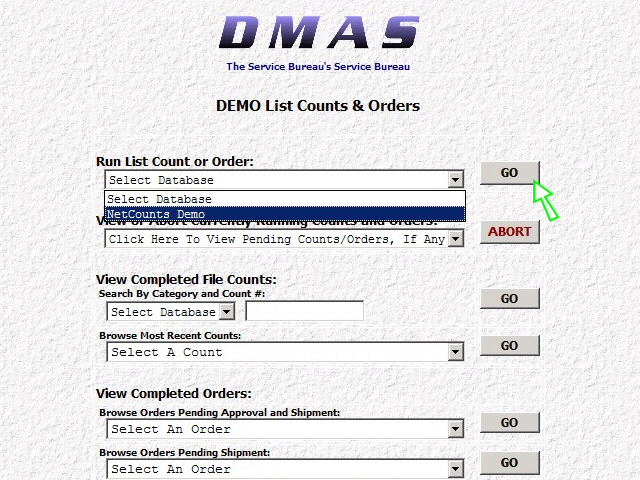 that shows all the available functions for your Account. From there, you can access the DEMO counts in the RUN COUNTS AND ORDERS menu.